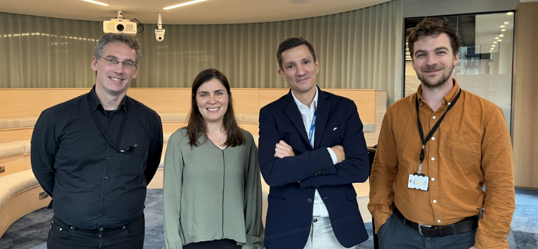 Prof. Omar Rachedi (Esade Business School, second right) with Matija Lozej, Elizaveta Lukmanova, and Cian Ruane, during his visit to the Central Bank of Ireland to discuss policy issues and his research on carbon-adjusted fiscal multipliers.
